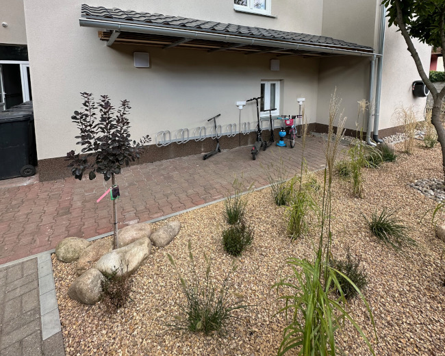 Bezplatné bezdrátové připojení k internetu pomocí WIFI v celé budově. Celý objekt je hlídán kamerovým systémem. V zahradě objektu k dispozici krytá stání pro kola a elektrokoloběžky (včetně možnosti nabíjení), pergola pro venkovní posezení a kryté sušáky na prádlo.
